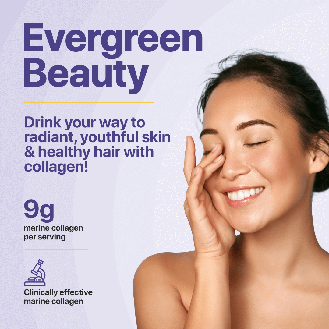Formulated with the power of clinically proven and patented Marine Collagen Peptides – TITAGEN® , which has been clinically proven* to give visibly glowing skin, healthy hair and strong nails in 90 days of everyday consumption.