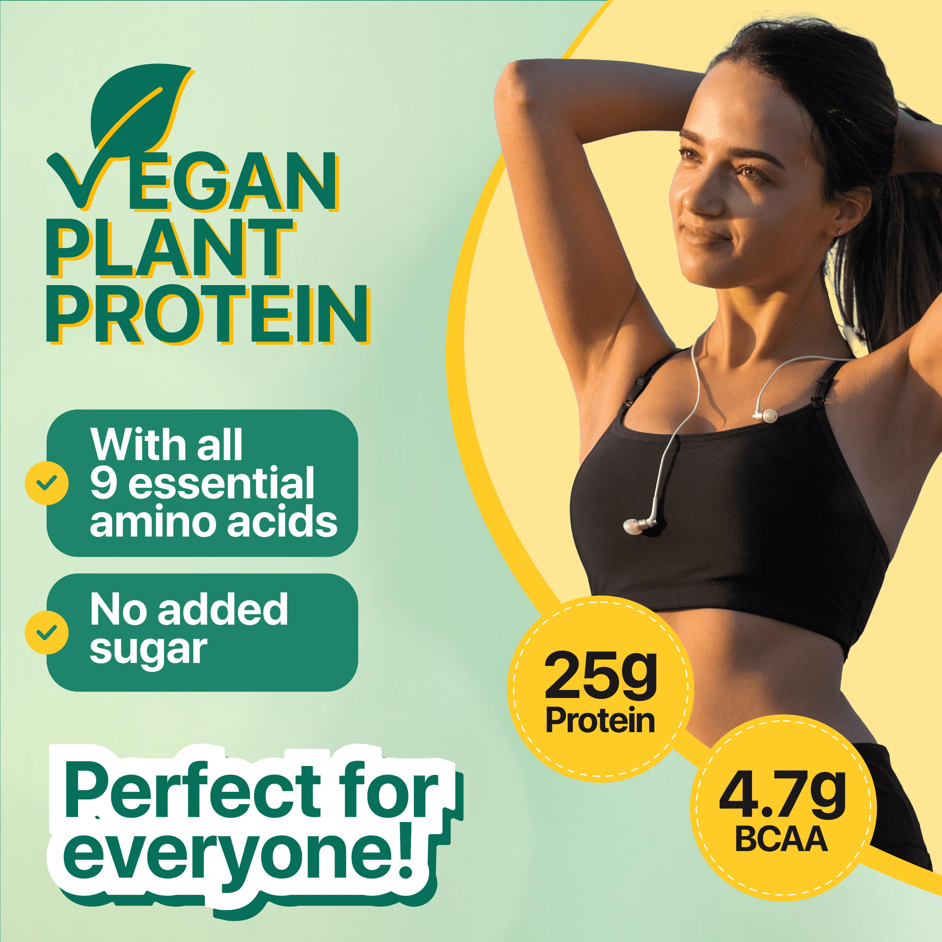 Since it is impossible to get this much protein from your everyday food, here’s when our Plant Protein supplement comes into the picture. Each scoop (serving) contains an easy 25g of protein and all the essential amino acids.